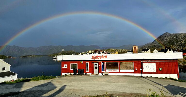 Das nördlichste Lebensmittelgeschäft Europas im Fischerdorf Gjesvær, mit Alltagsbedarf, lokalem Service und einem kleinen Kulturheritage-Center.