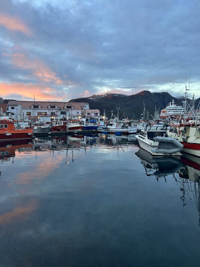 Dets avsidesliggende arktiske beliggenhet former både klima og lysforhold. Fra midten av mai til slutten av juli er midnattssolen til stede døgnet rundt, mens mørketiden fra slutten av november til januar gir myk skumring og lange, rolige kvelder. Temperaturene er mildere enn mange forventer for det fjerne nord: sommerene har et gjennomsnitt på rundt 12°C, med topper opp mot 16°C, mens vintrene ligger rundt –2°C, holdt relativt milde av Golfstrømmen.