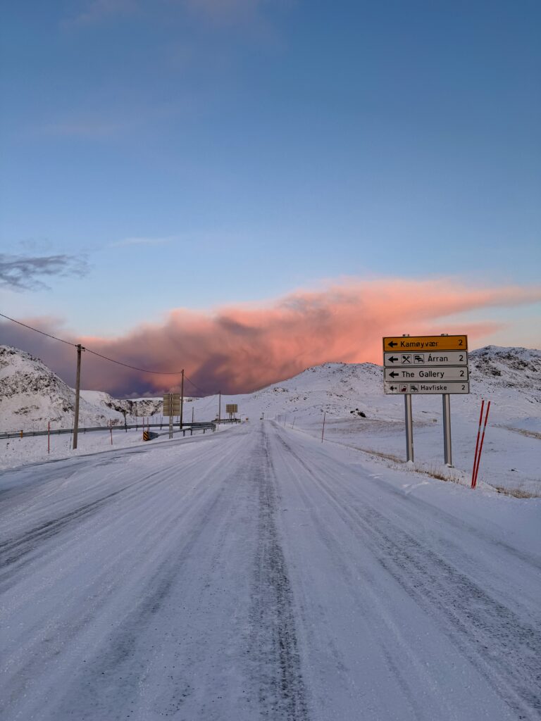 The northern lights often appear in the evenings, and calm winter weather creates a quiet, atmospheric landscape.